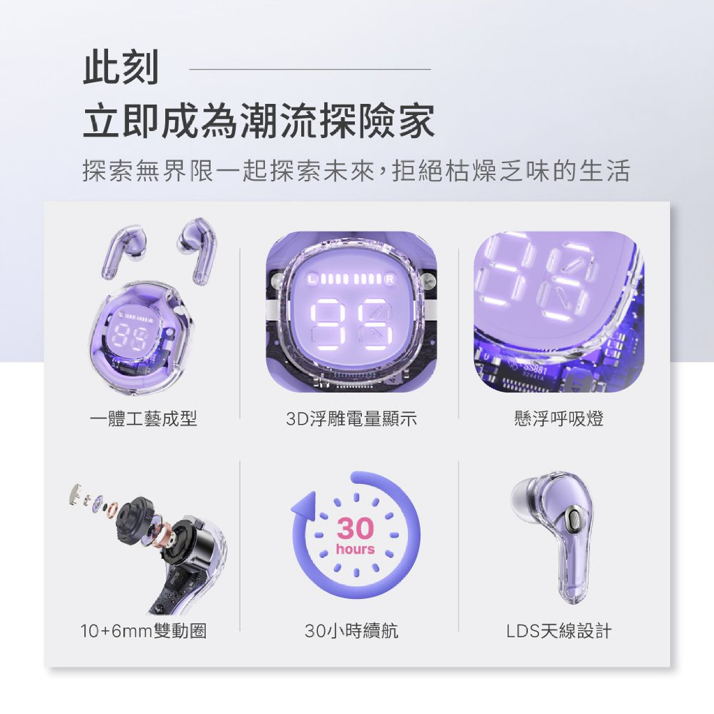 ACEFAST Crystal T8 小晶彩無線藍牙耳機 BT 5.3 透明耳機 藍芽 無線 耳機 入耳式耳機 RZ06珊瑚粉|苜蓿紫|曜石黑|皓月白|薄荷綠|冰河藍Q哥 旗艦商城|最專業的保護貼手機配件