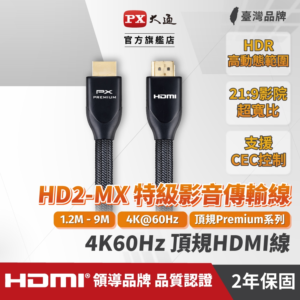 大通 HDMI線 HDMI to HDMI2.0協會認證4K HD2-1.2MX/2MX 1.2米~5米1.2米|2米|3米|5米PX大通電子官方UHD 8K HDMI影音旗艦館