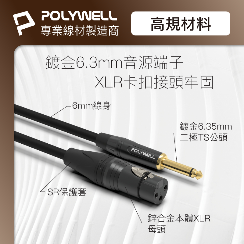 POLYWELL 6.35mm 轉 XLR 公對母 1米~3米 卡農 Cannon 佳能 麥克風線 寶利威爾 台灣現貨1米/100公分|2米/200公分|3米/300公分POLYWELL寶利威爾官方旗艦店