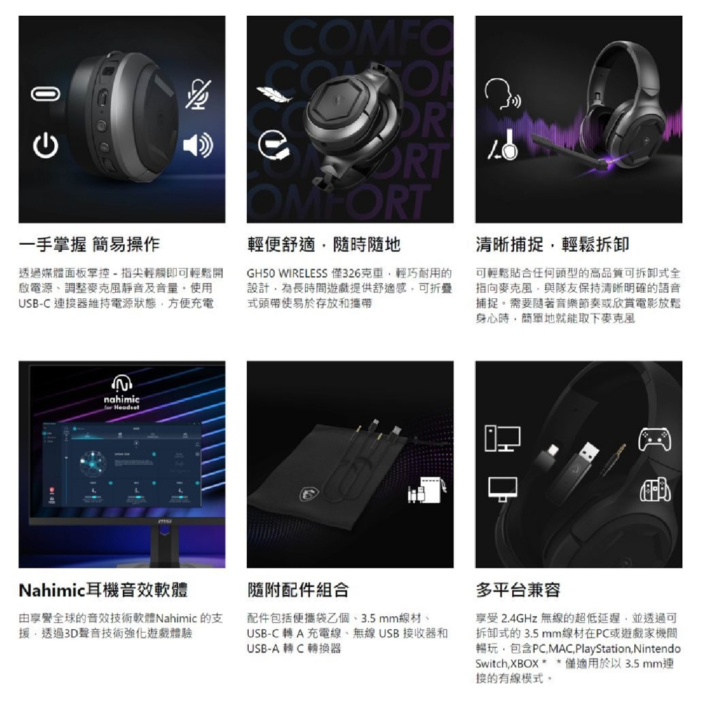 MSI IMMERSE GH50 WIRELESS 無線電競耳機 可拆卸式耳麥 折疊耳機 MSI893IMMERSE GH50 無線耳機Q哥 電玩旗艦商城|Switch2 PS5 遊戲片 Xbox ptcg寶可夢