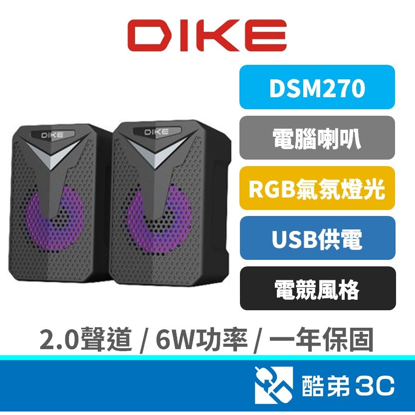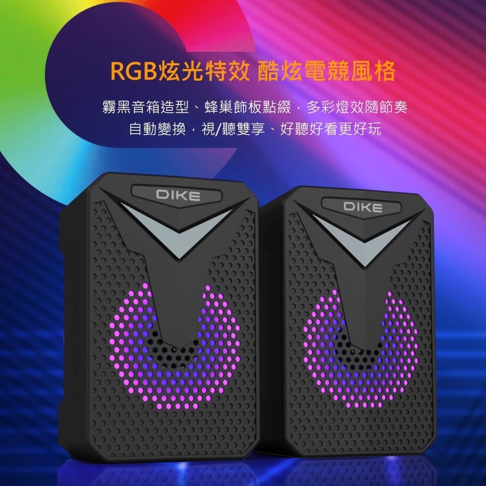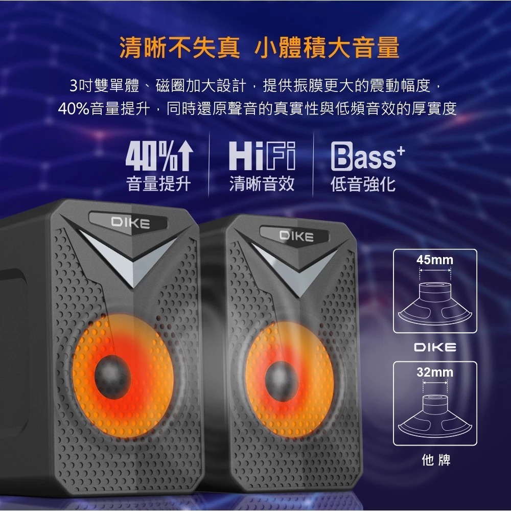 DIKE 磐達電子 DSM270 炫光重低音 2.0 聲道 USB供電 電腦喇叭 電競多彩燈效 6W 音響 黑色 公司貨DIKE 磐達電子 DSM270 炫光重低音 2.0 聲道 USB供電 電腦喇叭 電競多彩燈效 6W 音響 黑色 公司貨SpeakersQD 酷弟3C