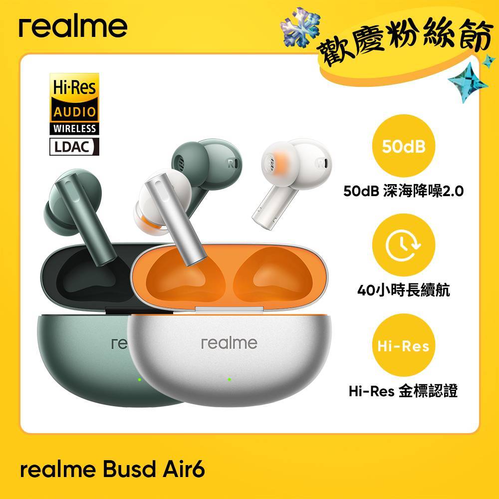 realme Buds Air6 降噪藍牙耳機 現貨 蝦皮直送靜謐綠|鈦空橙realme產品旗艦店