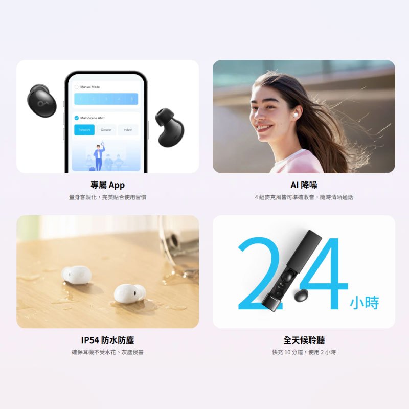 Soundcore A30i 主動降噪 真無線 藍牙耳機 降噪耳機 輕量 入耳式 防水 藍芽 麥克風 AI SCO005夢響粉|霧光黑|晨曦白Q哥 旗艦商城|最專業的保護貼手機配件