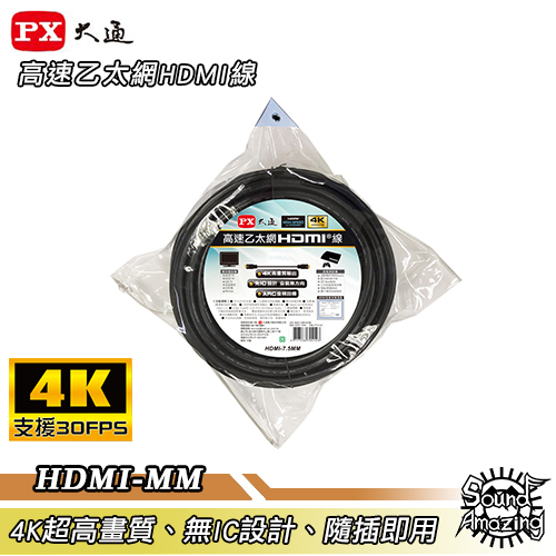 PX大通 HDMI-7.5MM/10MM/13MM/15MM 4K@30高畫質高速乙太網HDMI線【Sound Amaz7.5米|10米|13米|15米Sound Amazing