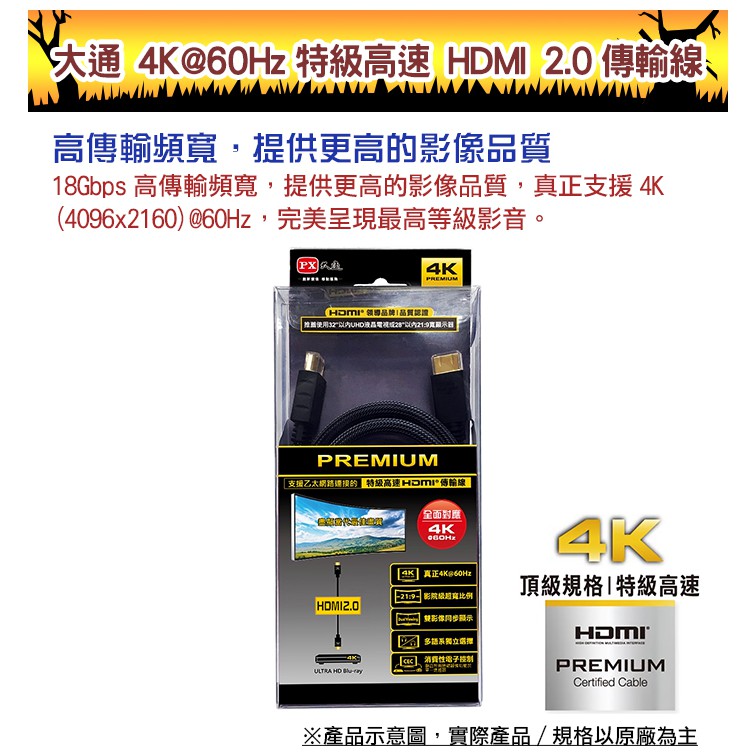 PX大通 HD2-1.2MX/2MX/3MX/5MX/7.5MX/9MX Premium高速HDMI2.0傳輸線1.2米|2米|3米|5米|7.5米|9米Sound Amazing