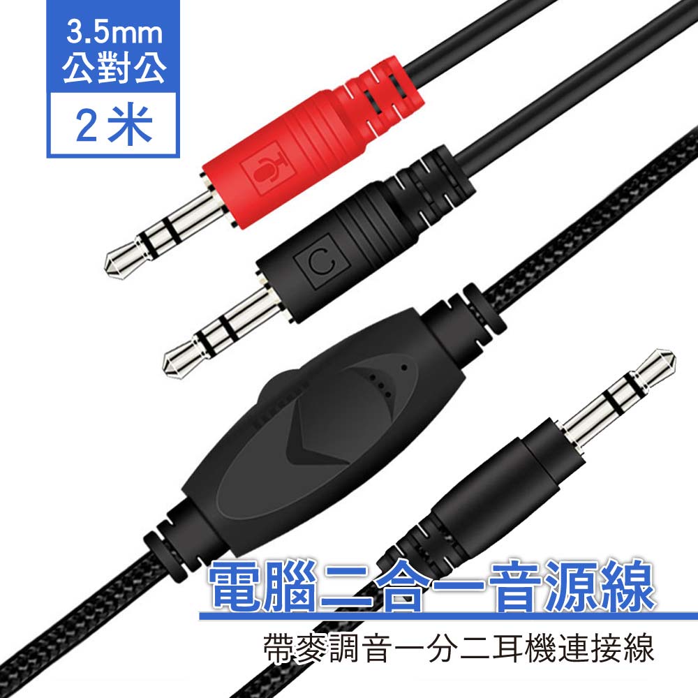 2米 電腦二合一音源線 – 帶麥調音一分二耳機連接線 – 3.5mm公對公2米 電腦二合一音源線 – 帶麥調音一分二耳機連接線 – 3.5mm公對公SUNYES 官方旗艦店