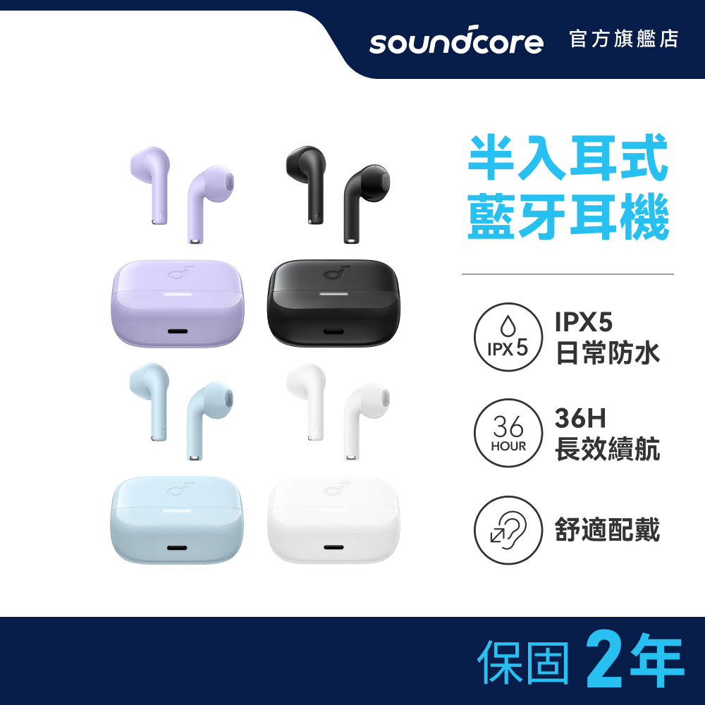 soundcore K20i 半入耳式藍牙耳機|半入耳設計 滿電續航暗夜黑|雲霧白|寧靜藍|淡雅紫Soundcore 官方旗艦店