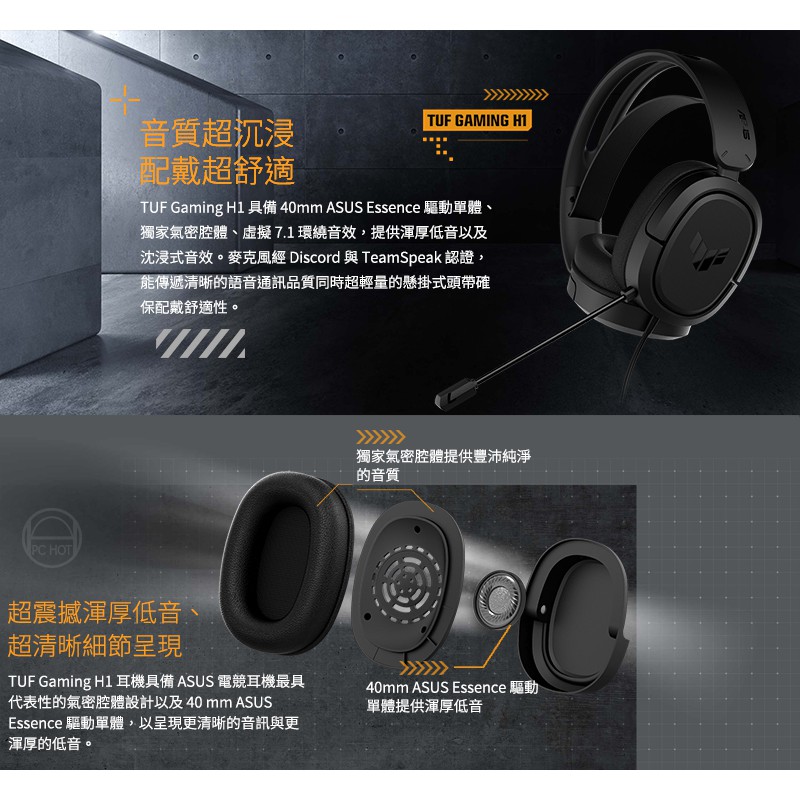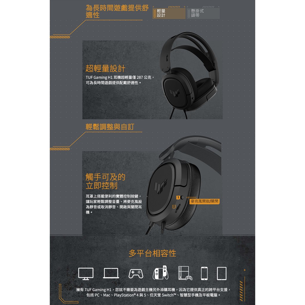 ASUS 華碩 TUF GAMING H1 有線電競耳機 輕量設計 人體工學 虛擬音效 耳機麥克風 電競耳機 遊戲耳機主商品+時尚耳機架|主商品|♻福利品【已拆封測試】ROG 華碩授權店 | 電競周邊館