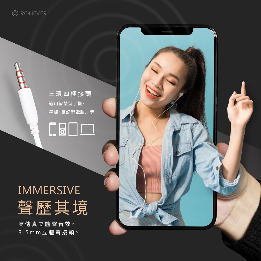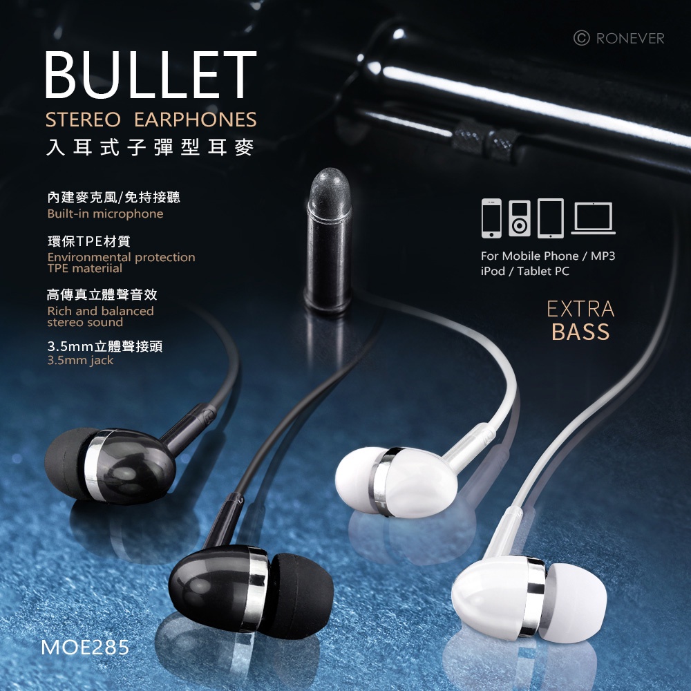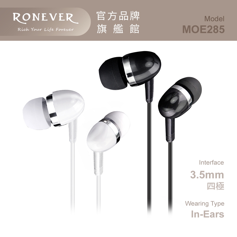 RONEVER MOE285 / 入耳式子彈型耳麥黑色|白色RONEVER 官方品牌館