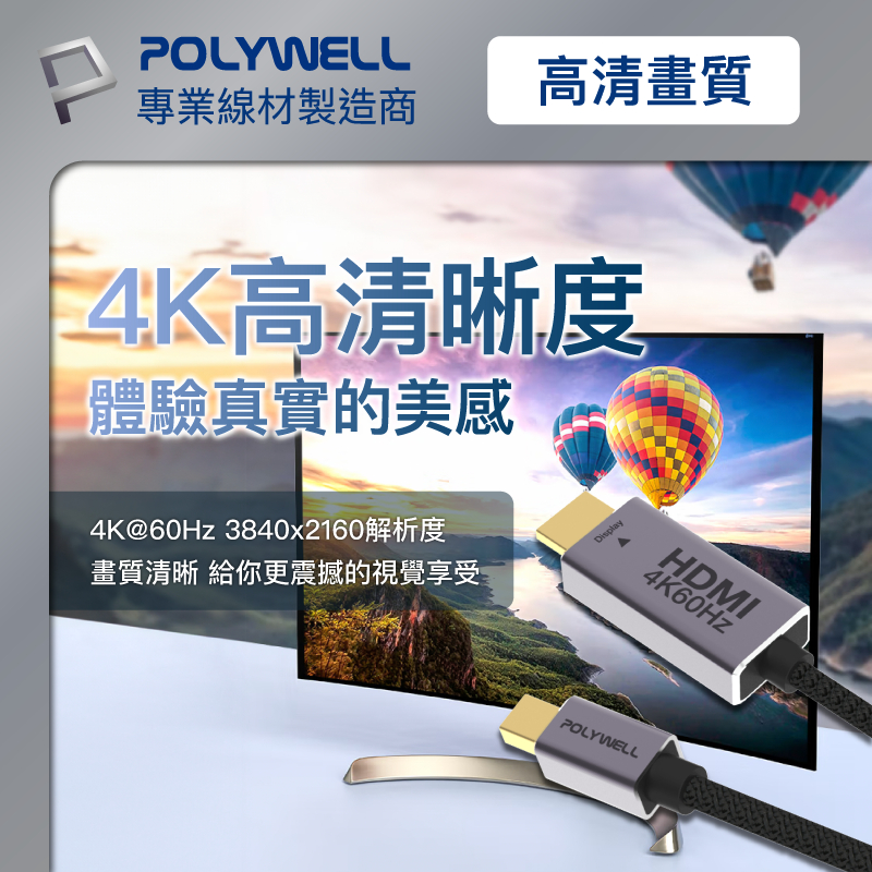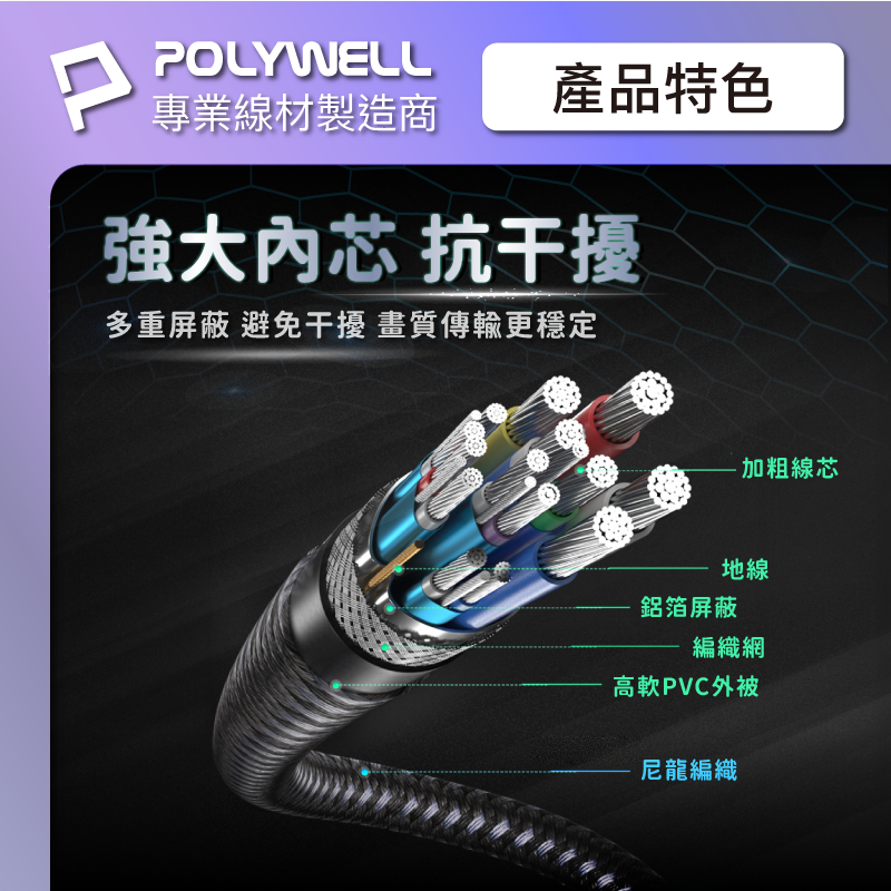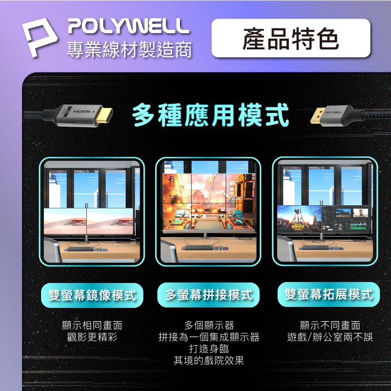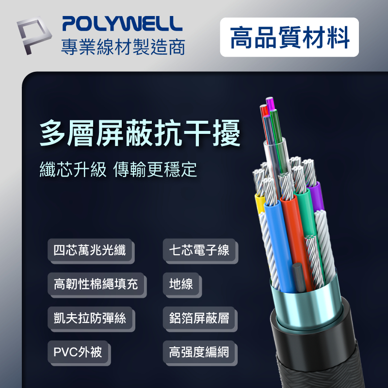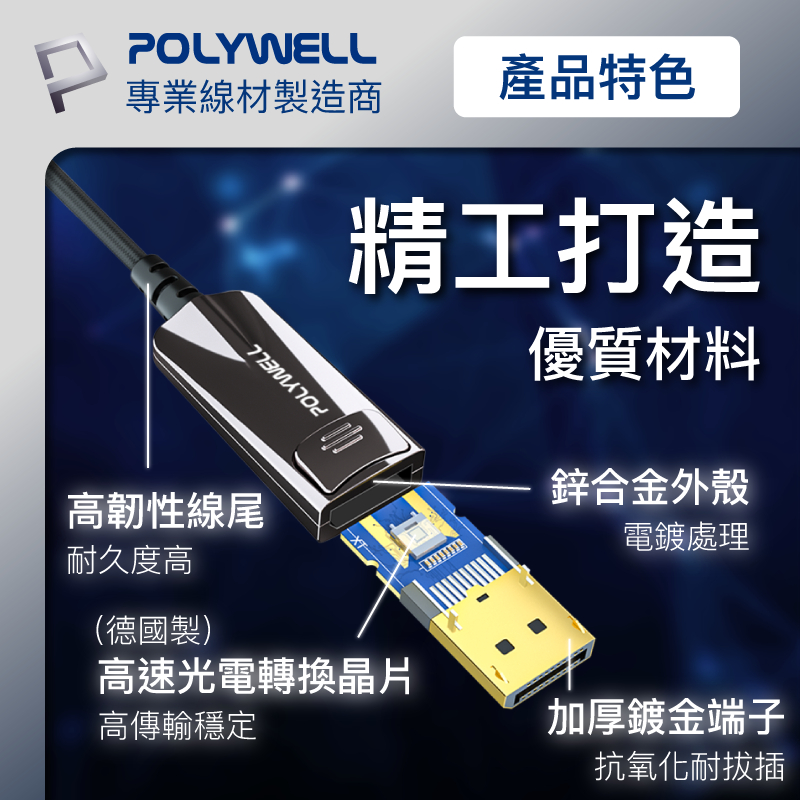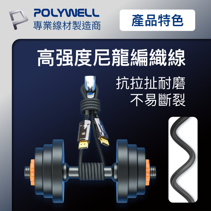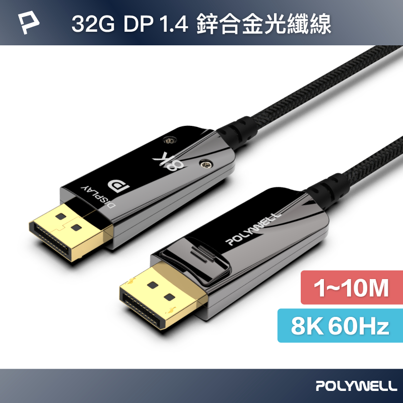 POLYWELL DP 8K AOC光纖影音線 1米~10米 德國晶片 4K144 8K60 編織線 寶利威爾 台灣現貨1米|2米|3米|5米|8米|10米POLYWELL寶利威爾官方旗艦店