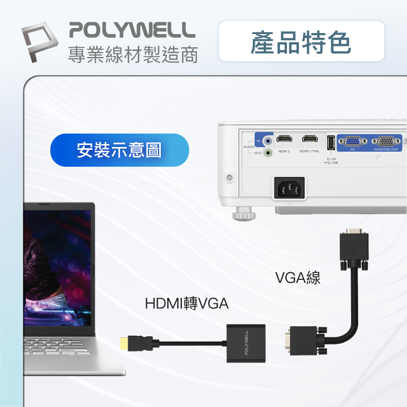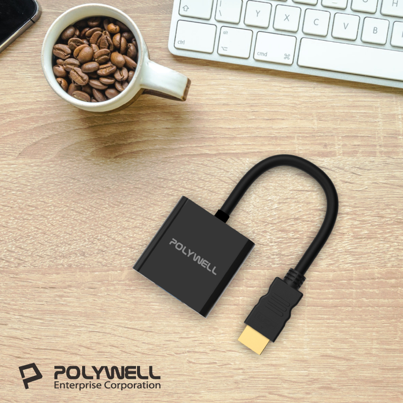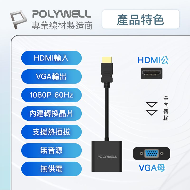 POLYWELL HDMI轉VGA 訊號轉換器 1080P FHD HDMI VGA 轉接線 轉接頭 寶利威爾 台灣現貨無音訊/無供電版POLYWELL寶利威爾官方旗艦店