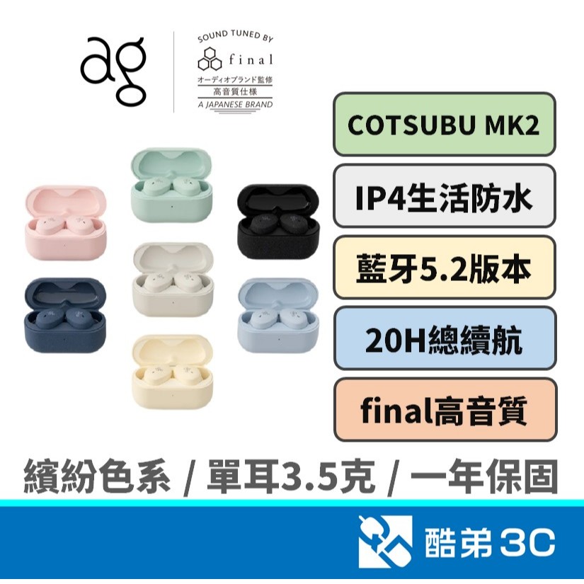 日本 Final ag COTSUBU MK2 真無線耳機 真無線藍牙耳機 藍牙耳機 final 監製調音 公司貨寂靜黑|天空藍|奶油白|櫻花粉|薄荷綠|檸檬黃|海軍藍QD 酷弟3C