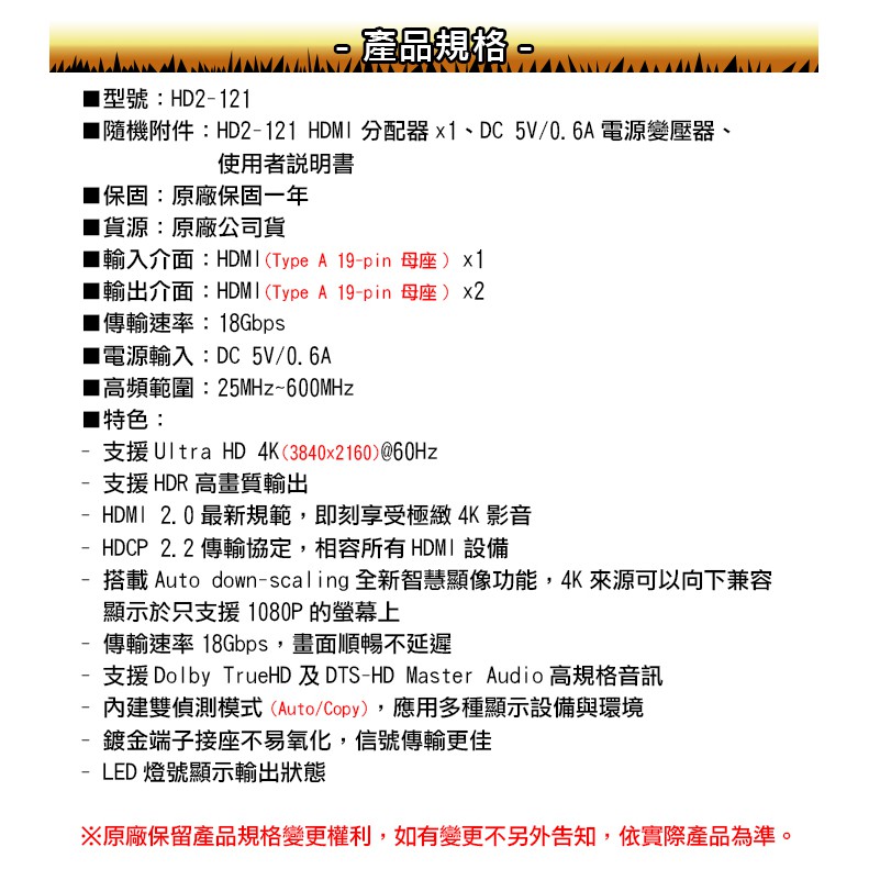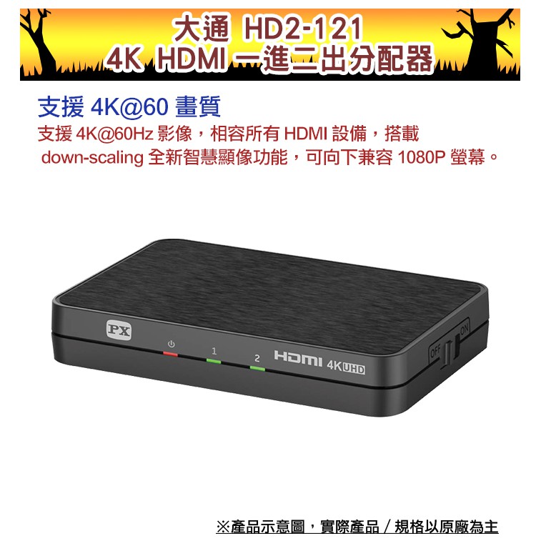PX大通 HD2-121 HDMI一進二出分配器 支援4K@60畫質/相容所有HDMI設備【Sound Amazing】PX大通 HD2-121 HDMI一進二出分配器 支援4K@60畫質/相容所有HDMI設備【Sound Amazing】Sound Amazing