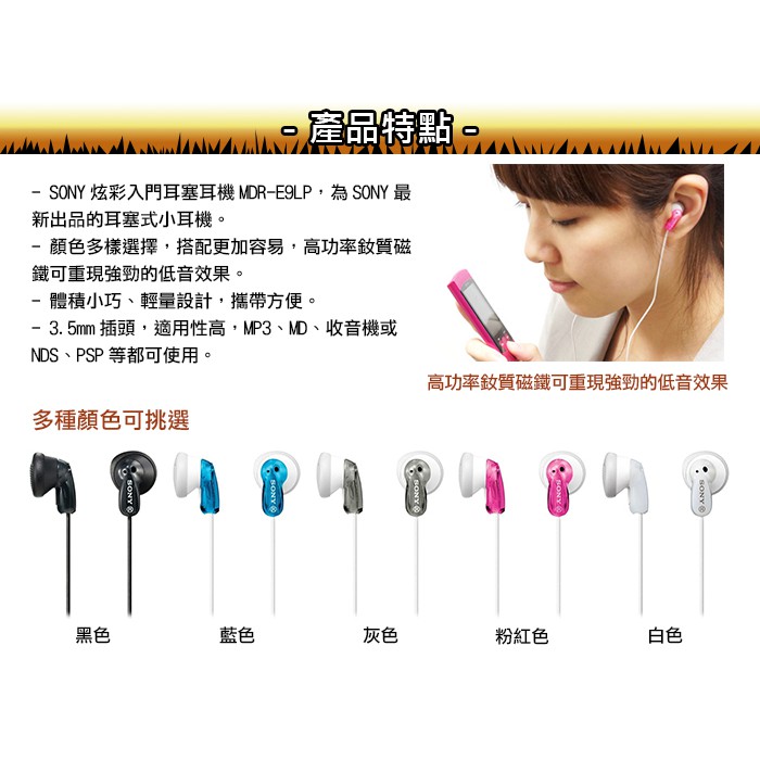 SONY MDR-E9LP 多彩耳塞式耳機【Sound Amazing】黑色|灰色|藍色|粉紅|雪白Sound Amazing