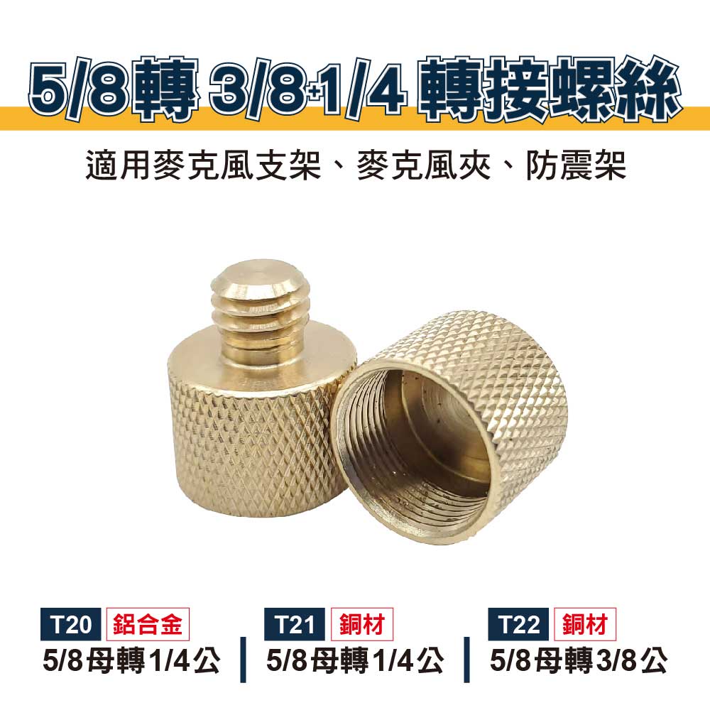 5/8母轉3/8+1/4 轉接螺絲|貨號T20/T21/T22 鋁合金/銅材|適用麥克風支架/麥克風夾/防震架T21-SR 5/8母轉1/4公 銅材|T21-GD 5/8母轉1/4公 銅材|T22-SR 5/8母轉3/8公 銅材|T22-GD 5/8母轉3/8公 銅材|T20-BK 5/8母轉1/4公 鋁合金|T20-SR 5/8母轉1/4公 鋁合金|T20-GD 5/8母轉1/4公 鋁合金|T20-BU 5/8母轉1/4公 鋁合金|T20-RD 5/8母轉1/4公 鋁合金SUNYES 官方旗艦店