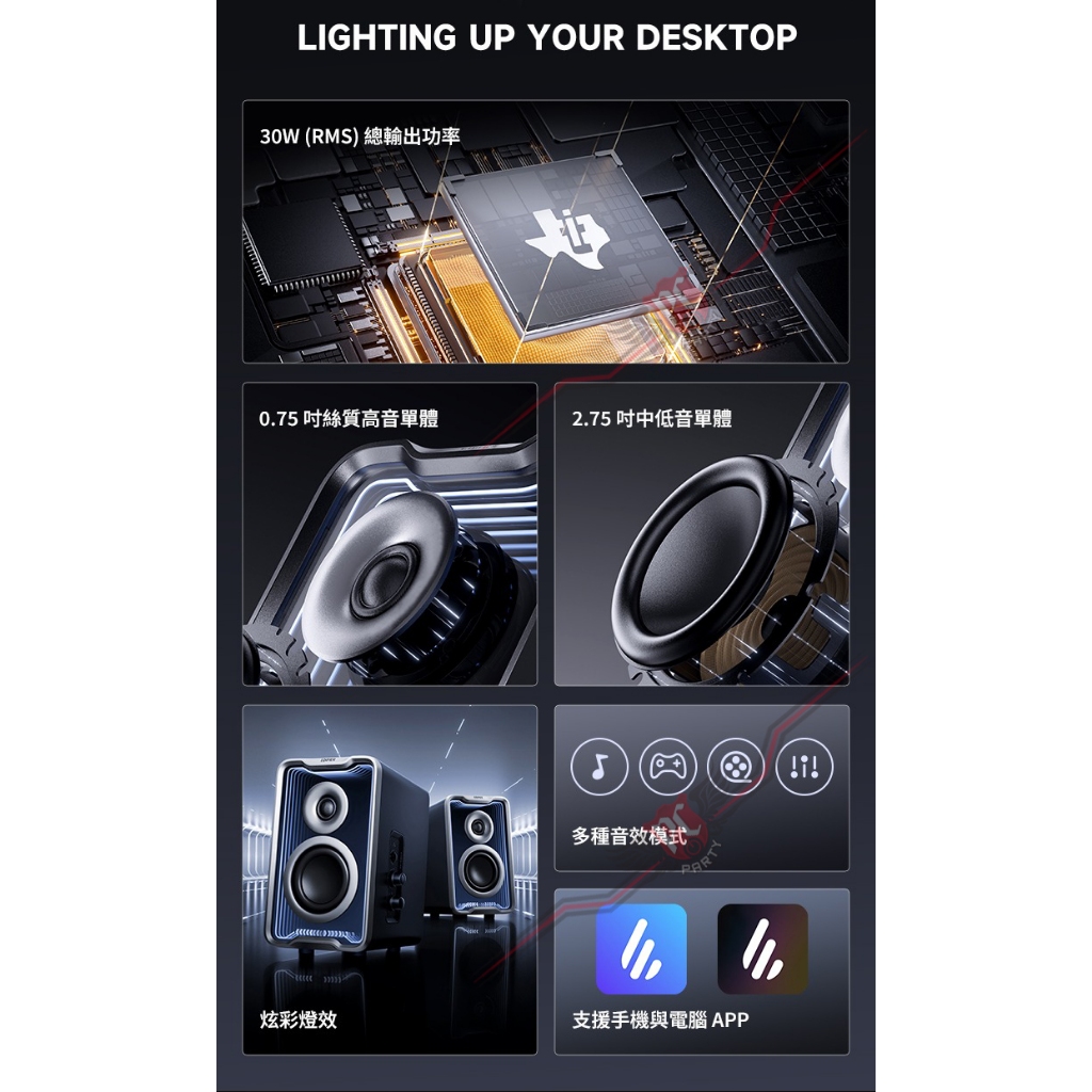 漫步者 Edifier QR30 2.0 桌面藍牙喇叭 PC PARTY黑色|白色SpeakersPC PARTY 電競週邊專家