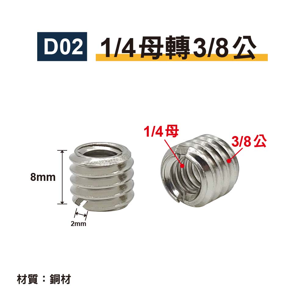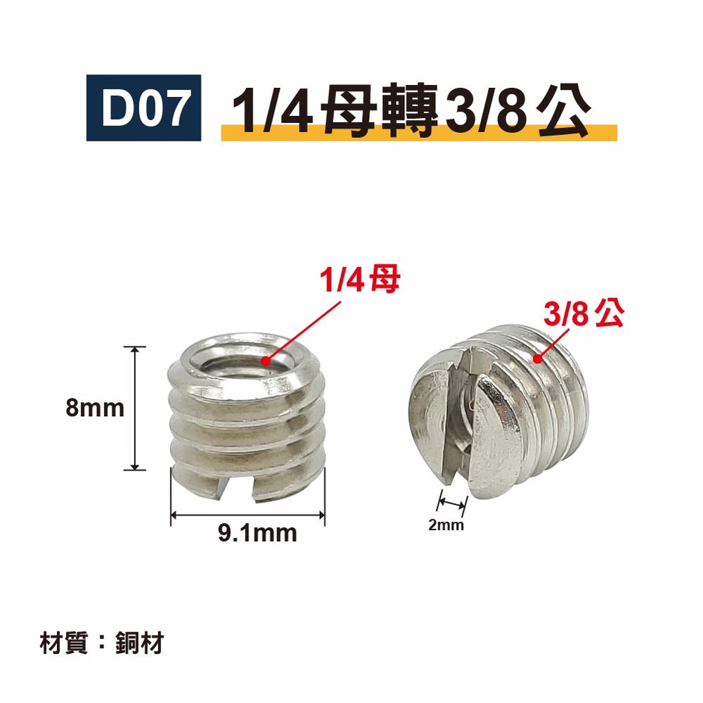 1/4母轉3/8公轉接螺絲|貨號D01/D02/D03/D04/D05/D06/D07|銅材/不鏽鋼|適用支架/麥克風夾