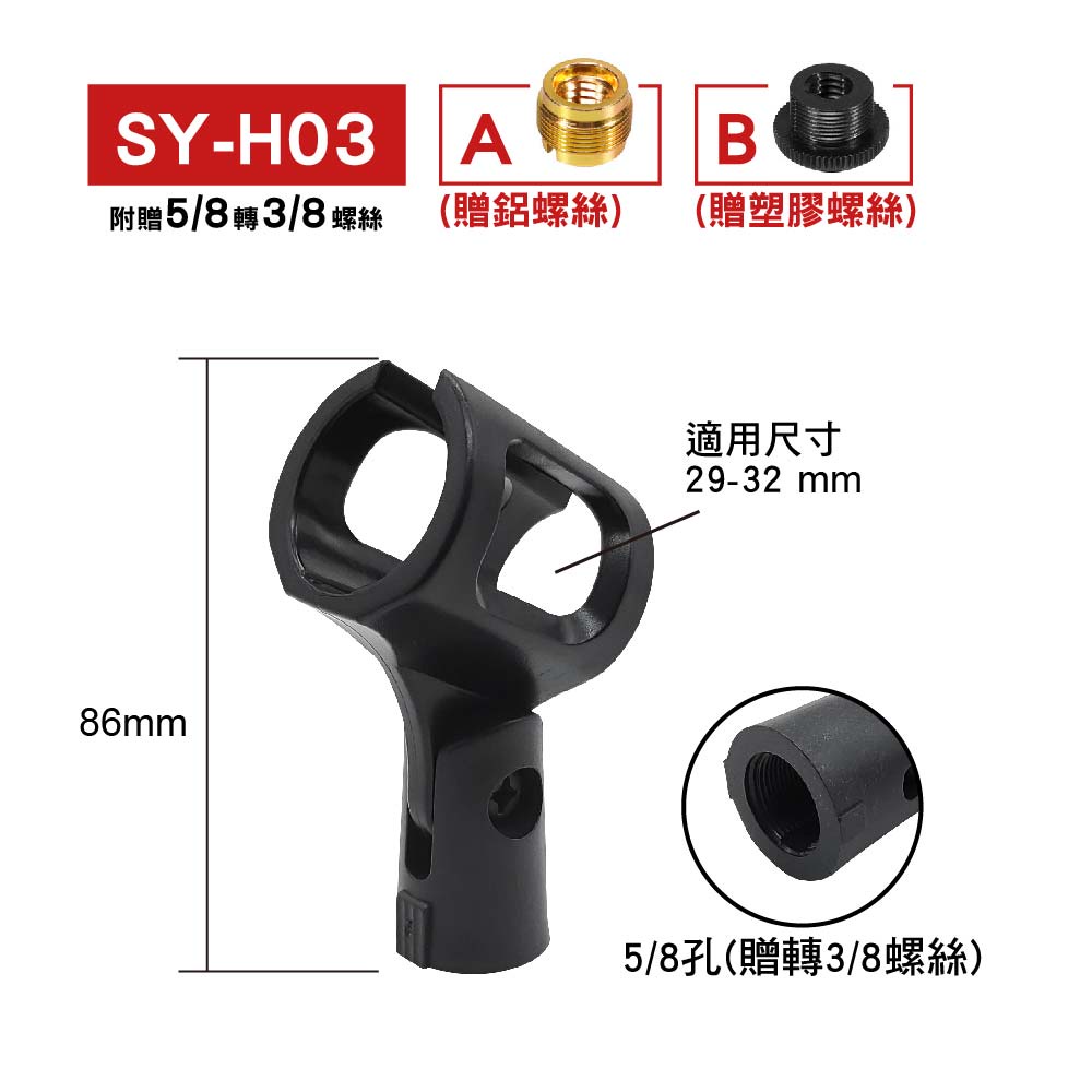 麥克風夾|話筒夾 / 支架夾頭 / U型夾 / 彈簧夾 / 熱靴夾|全銅螺紋 / 附贈轉接螺絲【請看賣場說明】SY-KT01A 彈簧夾(贈鋁螺絲)|SY-KT01B 彈簧夾(贈塑膠螺絲)|SY-H01 麥克風圓角夾(贈塑膠螺絲)|SY-M17 全銅螺紋麥克風夾|SY-RX01 熱靴麥克風夾|SY-H03A 空管夾(贈鋁螺絲)|SY-ST01A實心彈簧夾(贈鋁螺絲)|SY-ST01B實心彈簧夾(贈塑膠螺絲)|SY-KT03 麥克風夾|SY-H03B 空管夾(贈塑膠螺絲)|SY-W01 麥克風直角夾(贈塑膠螺絲)SUNYES 官方旗艦店