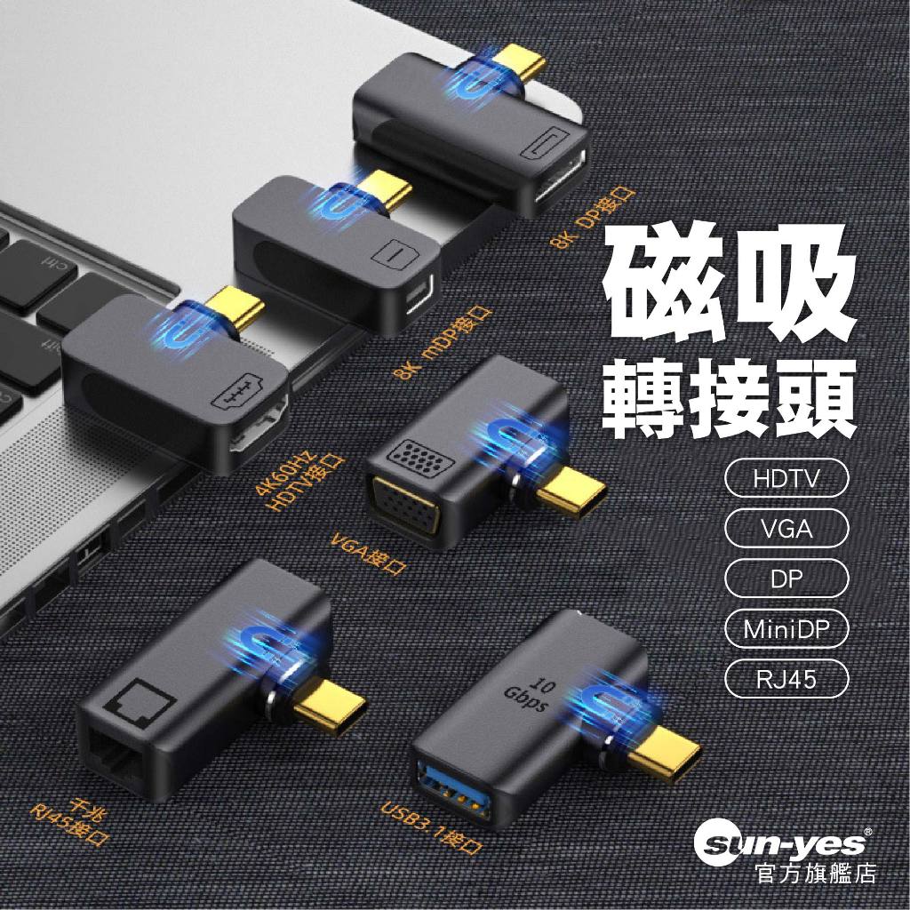 Type-C轉HDTV/DP/MiniDP/VGA/RJ45磁吸轉接頭|SY-571|轉換頭/影音網路轉接/鍵鼠連接HDTV母轉Type-C公|VGA母轉Type-C公|DP母轉Type-C公|MiniDP母轉Type-C公|RJ45母轉Type-C公SUNYES 官方旗艦店