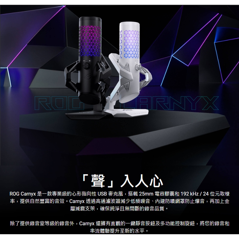 ROG Carnyx 專業級電競 RGB 電容式麥克風 金屬減震架 一鍵靜音 多功能控制旋鈕 錄音室等級黑色,主商品|黑色,⏰限時促銷|白色,主商品|白色,⏰限時促銷PCHOT 線上電競 | 3C旗艦店