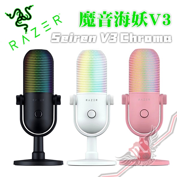雷蛇 RAZER Seiren V3 Chroma 魔音海妖 V3 幻彩版麥克風 PCPARTY黑色|白色|粉色PC PARTY 電競週邊專家