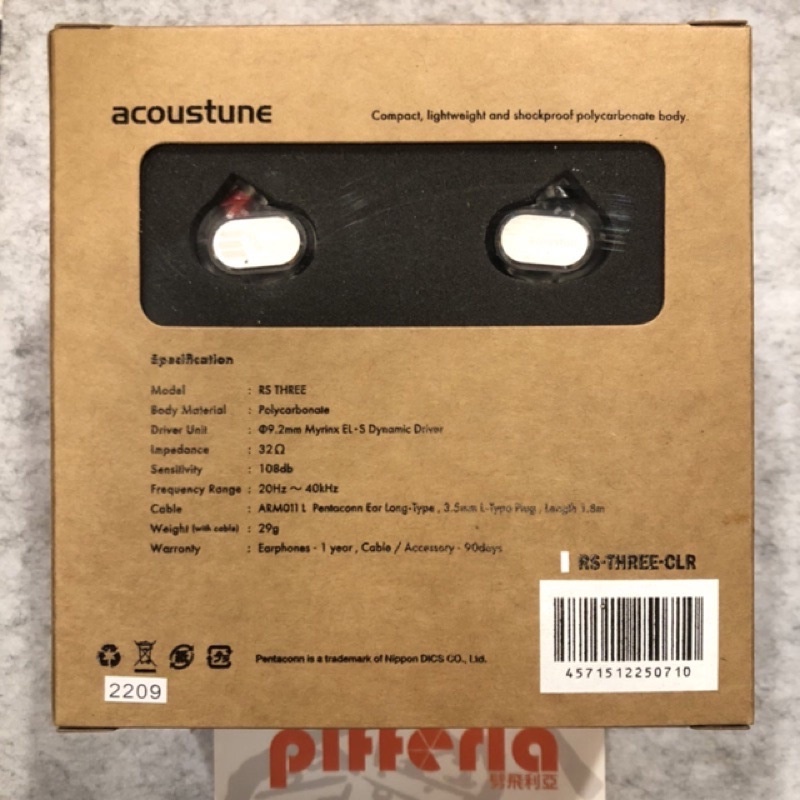 Acoustune RS THREE RS3 入耳式監聽耳機 有線耳機|劈飛好物|附贈6.3轉接頭 台灣公司貨透明|藍色Pifferia Goods|劈飛好物商城