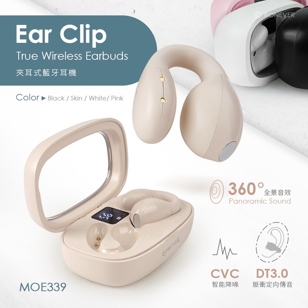 RONEVER MOE339 / 夾耳式藍牙耳機 (加贈收納袋 限量)黑色+贈收納袋|白色+贈收納袋|膚色+贈收納袋RONEVER 官方品牌館