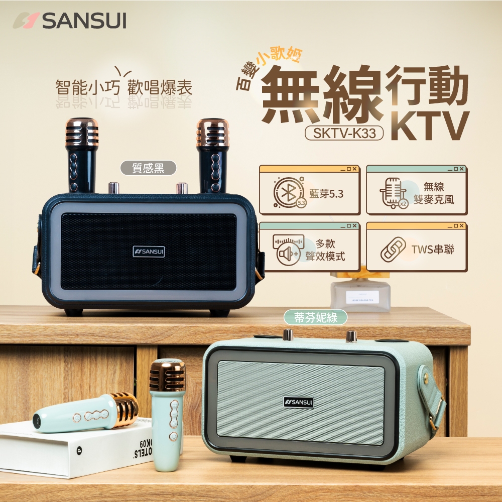 【SANSUI 山水】百變小歌姬 無線行動KTV (一鍵消除人聲) SKTV-K33百變小歌姬SKTV-K33-質感黑|百變小歌姬SKTV-K33-蒂芬妮綠SpeakersSANSUI山水 官方旗艦店 | 創造美好舒適生活