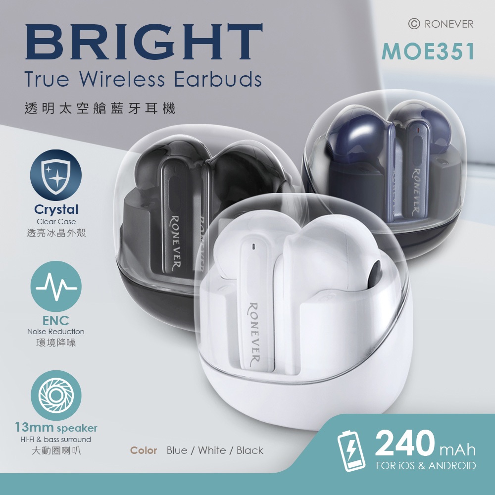 RONEVER MOE351 / 透明太空艙藍牙耳機黑色|白色|藍色RONEVER 官方品牌館