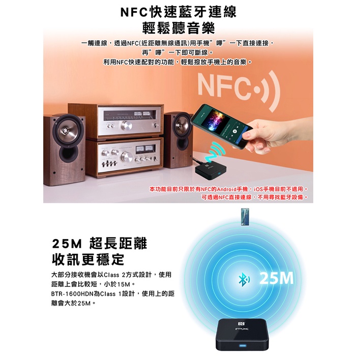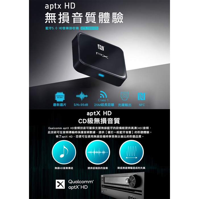 PX大通 BTR-1600HDN 藍牙5.0HD音樂接收機 NFC快速連結/25M超長距離 Sound AmazingPX大通 BTR-1600HDN 藍牙5.0HD音樂接收機 NFC快速連結/25M超長距離 Sound AmazingSound Amazing