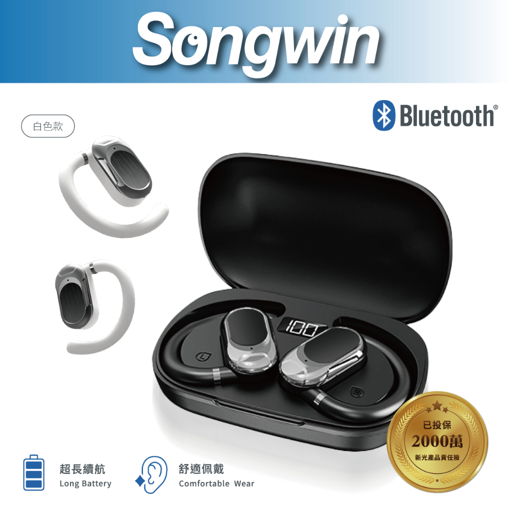 【Songwin】PH-BT4800超輕量開放型耳掛式藍牙耳機[尚之宇旗艦館][保固]【蝦皮代開發票】黑色|白色SONGWIN 旗艦館