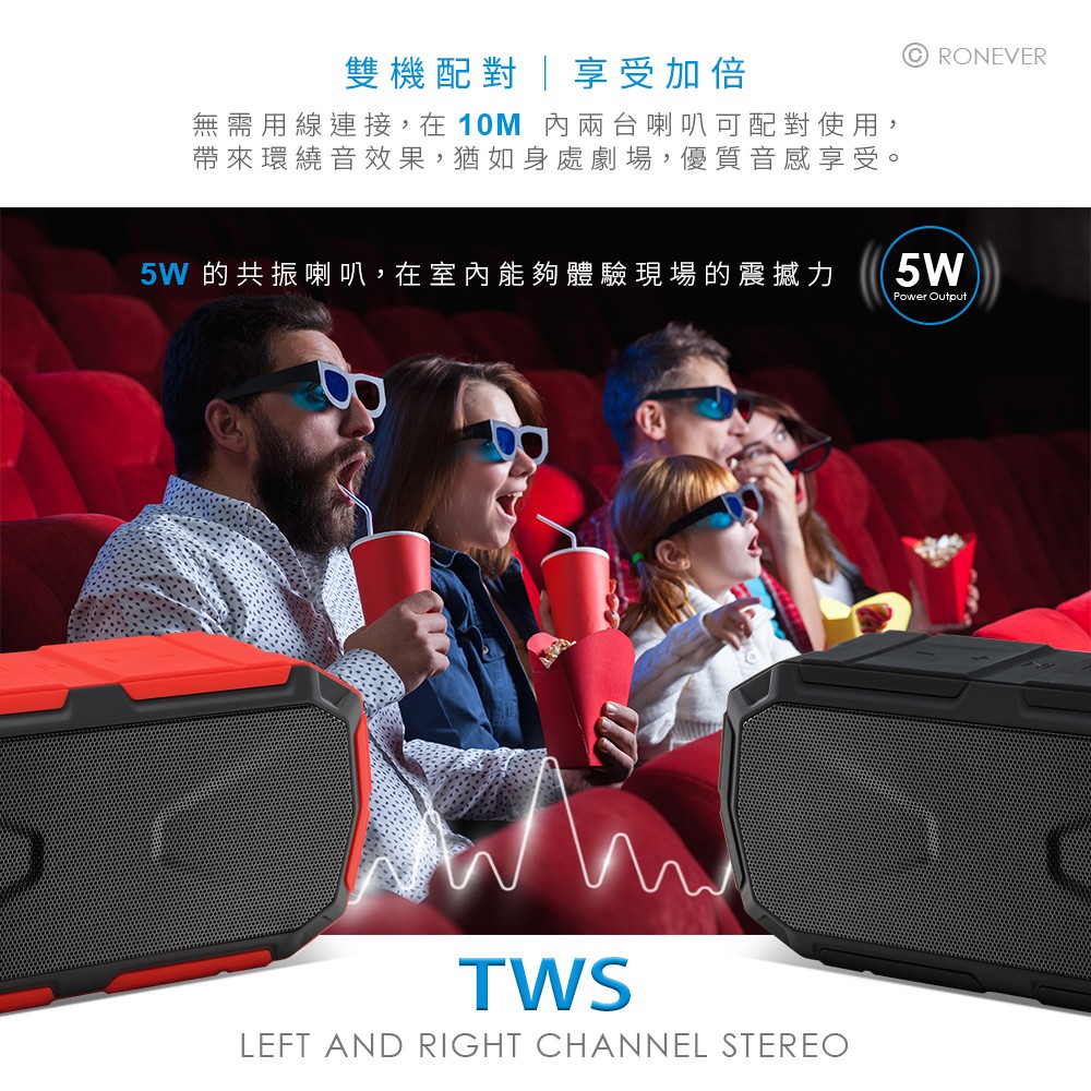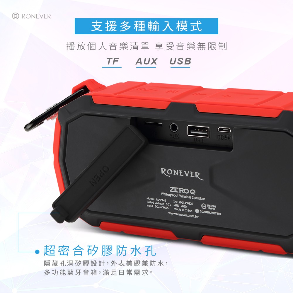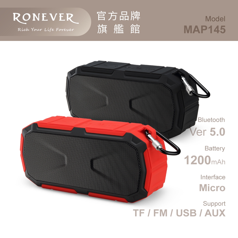 RONEVER MAP145 / ZERO Q 防水藍牙喇叭黑色|紅色SpeakersRONEVER 官方品牌館
