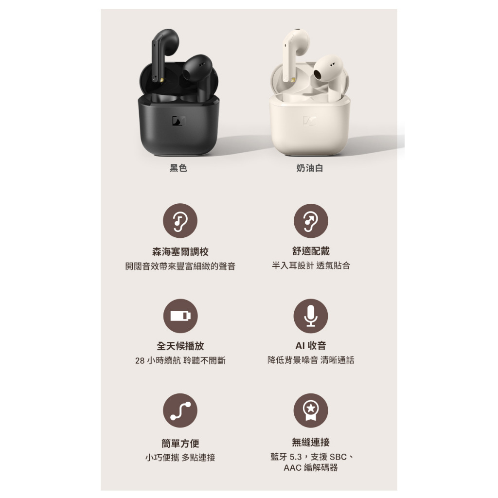 Sennheiser 森海塞爾 ACCENTUM Open 半開放式真無線耳機黑色|奶油白Sennheiser consumer hearing 森海塞爾耳機官方旗艦店