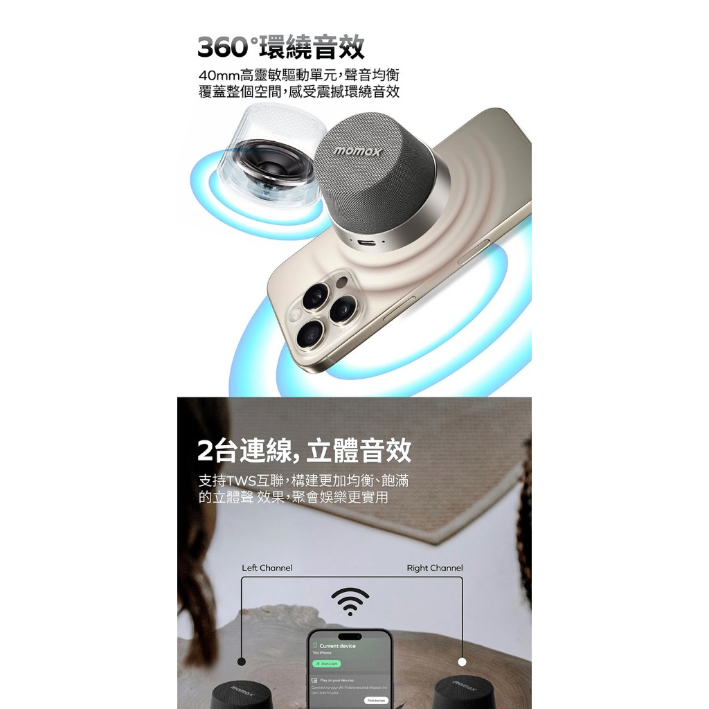 【Momax】迷你磁吸支架無線音箱1-Vibe Go(原廠公司貨)黑色|銀色|鈦金|沙漠金OthersSeeyou品牌旗艦館