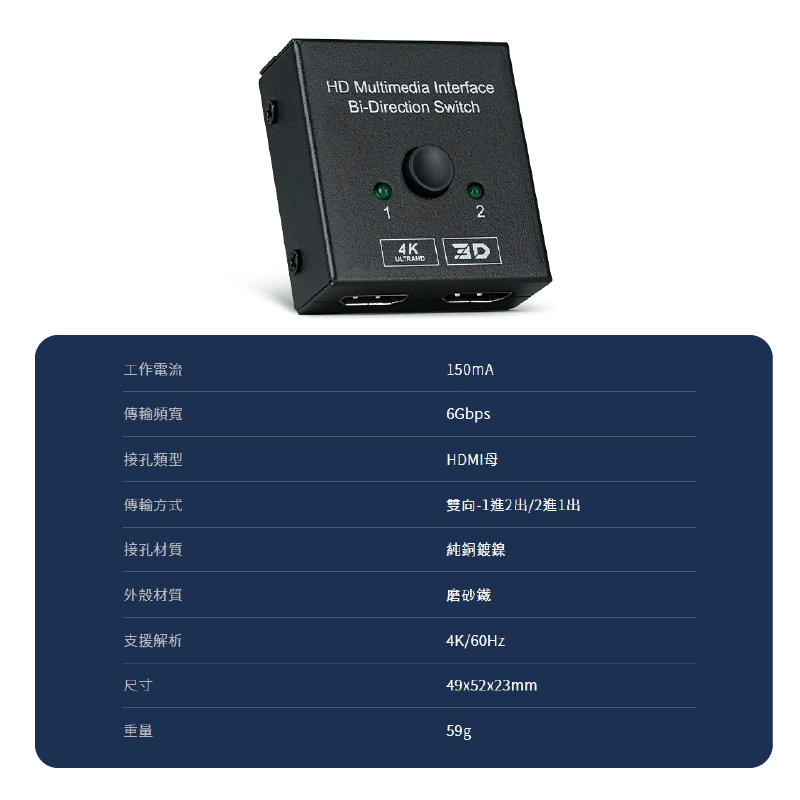 RONEVER HDMI雙向切換器 1進2出 2進1出 切換 電腦 電視盒 螢幕 電視 擴充 4K 轉換器 RV016雙向切換器Q哥 旗艦商城|最專業的保護貼手機配件