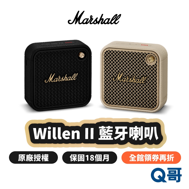 Marshall Willen II 攜帶型 藍牙喇叭 IP67 揚聲器 音響 無線 音箱 MAS014古銅黑|奶油白SpeakersQ哥 旗艦商城|最專業的保護貼手機配件