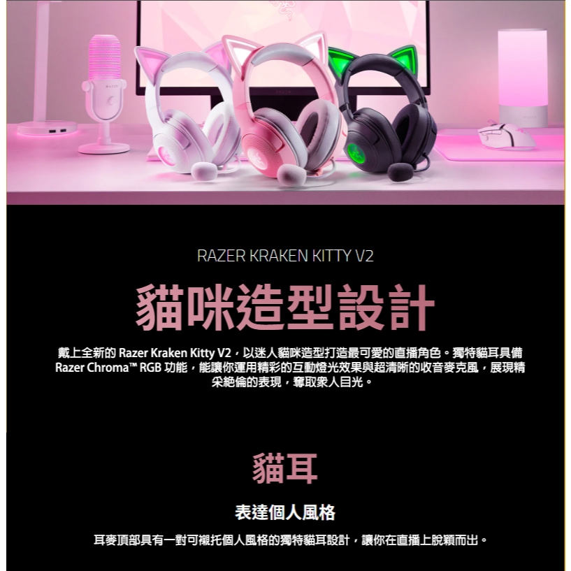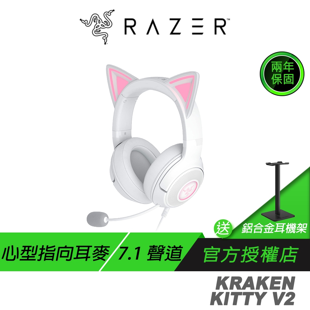 Razer 雷蛇 Kraken Kitty V2 北海巨妖 電競耳機 白色 降噪耳機 有線耳機 電腦耳機 雷蛇耳機白色,主商品|白色,主商品+黑色耳機架Razer雷蛇|電競週邊館