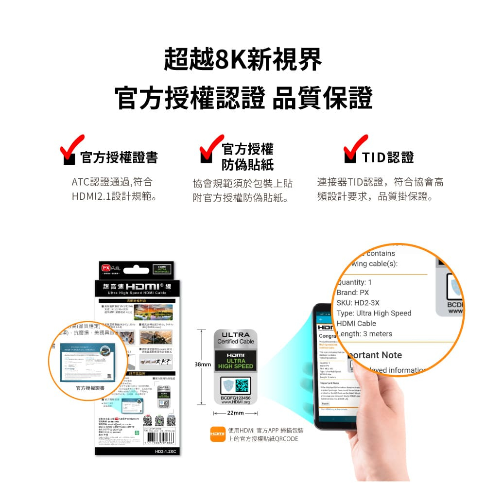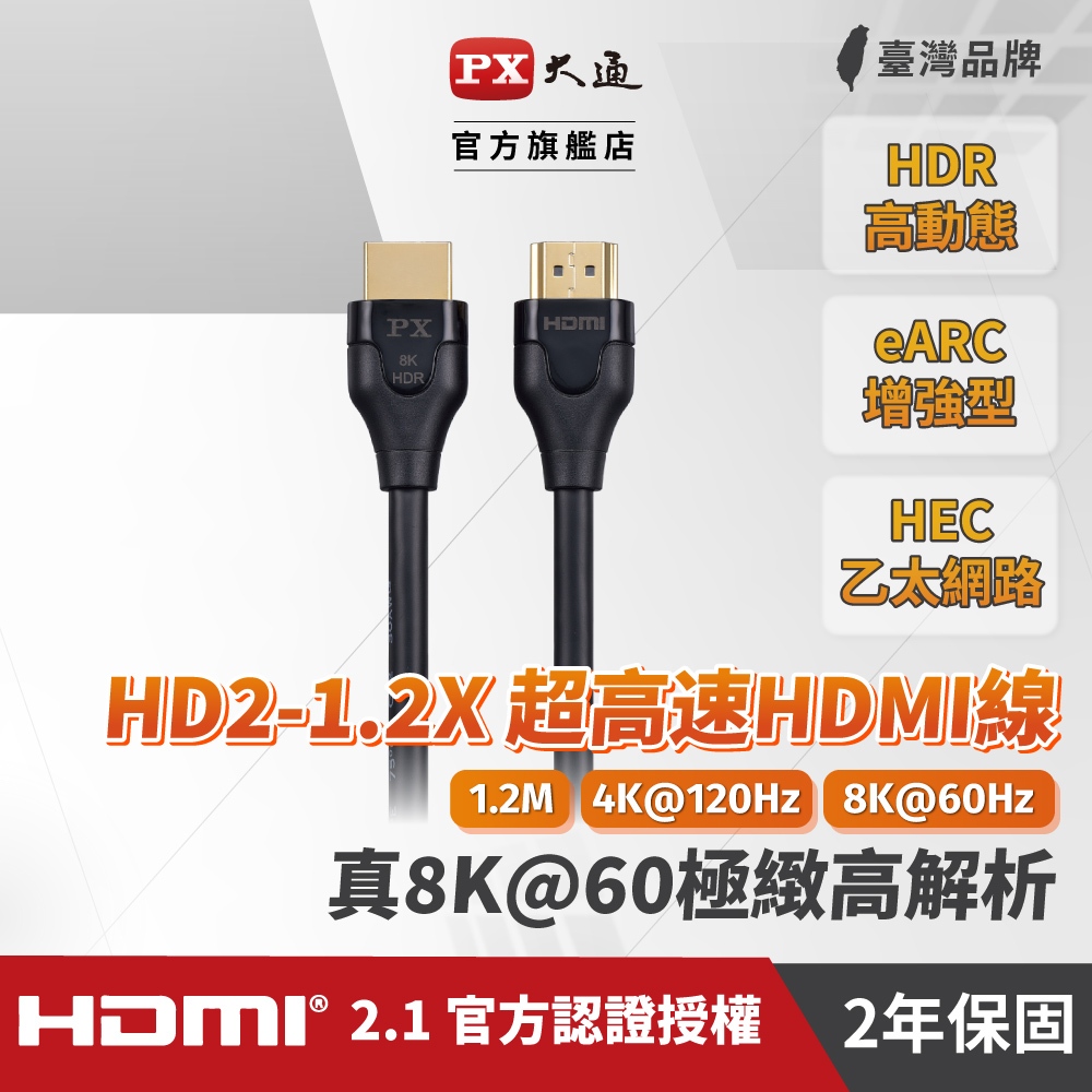 大通 HDMI線 真8K HDMI 2.1版 HD2-1.2X 1.2M超高畫質傳輸線1.2米單入PX大通電子官方UHD 8K HDMI影音旗艦館