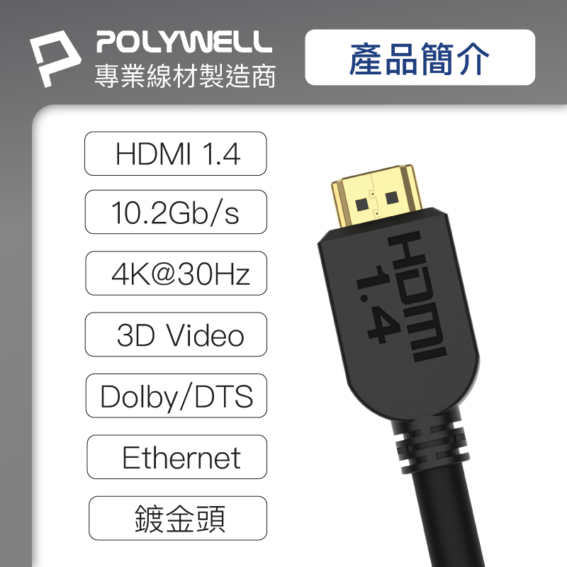 POLYWELL HDMI線 1.4版 50公分~5米 4K 30Hz HDMI 傳輸線 工程線 寶利威爾 台灣現貨2米|3米|5米|1米|50公分POLYWELL寶利威爾官方旗艦店
