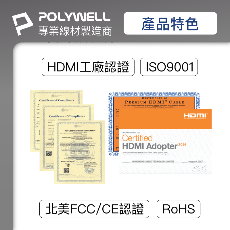 POLYWELL HDMI線 2.0 Premium 認證線 發燒線 1米~3米 4K60 HDMI 寶利威爾 台灣現貨1米/100公分|2米/200公分|3米/300公分POLYWELL寶利威爾官方旗艦店