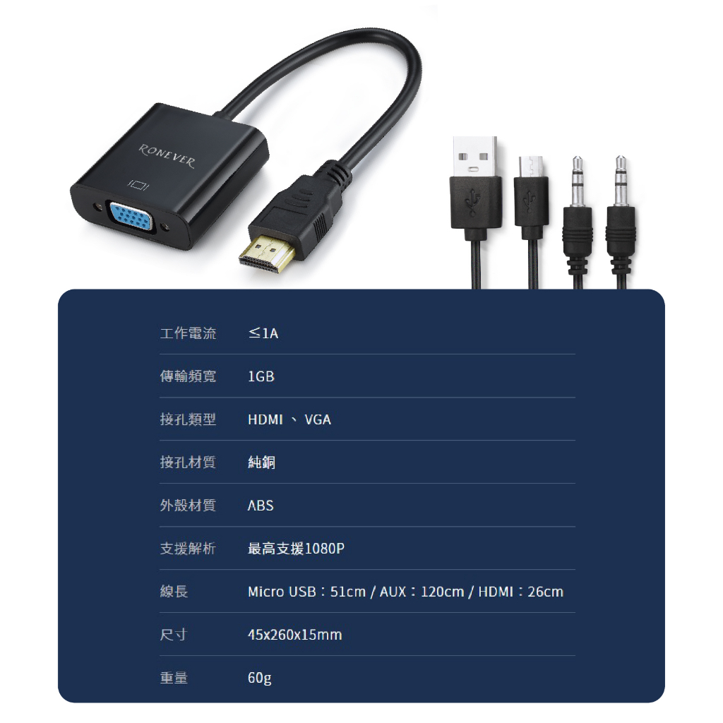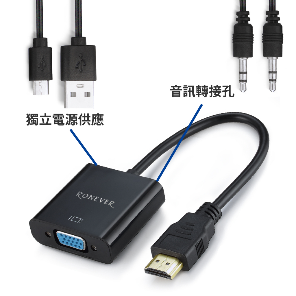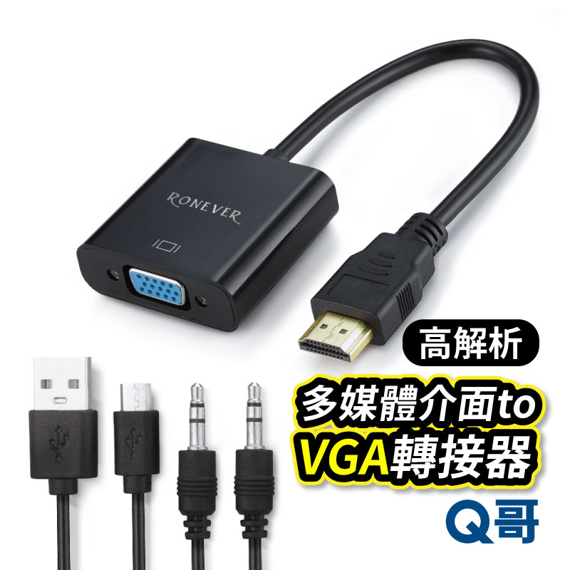 RONEVER 高清多媒體介面to VGA轉接器 HDMI 轉換線 轉接頭 3.5mm micro USB RV010多媒體介面to VGA轉接器Q哥 旗艦商城|最專業的保護貼手機配件