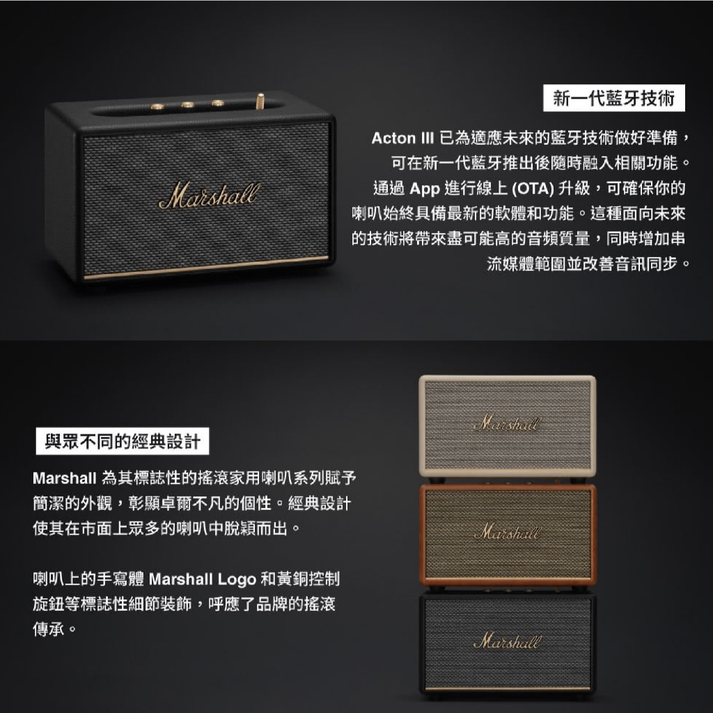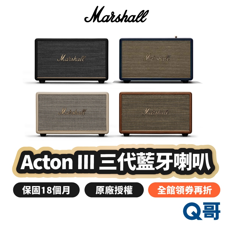 Marshall Acton III 三代 藍牙喇叭 藍芽 5.2 音響 喇叭 音箱 家用式 家庭式 MAS001復古棕|經典黑|奶油白|夜幕藍SpeakersQ哥 3C資訊通訊生活旗艦館