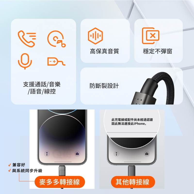 麥多多 雨滴系列 音頻轉接線 適用iPhone 蘋果 安卓 3.5mm 耳機 編織線 轉接線 轉接器 音源線 MD105適用蘋果 i14以下 to 3.5mmQ哥 旗艦商城|最專業的保護貼手機配件
