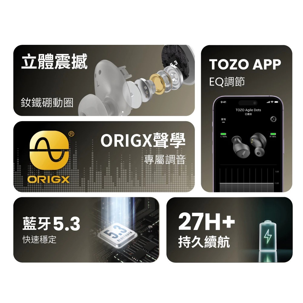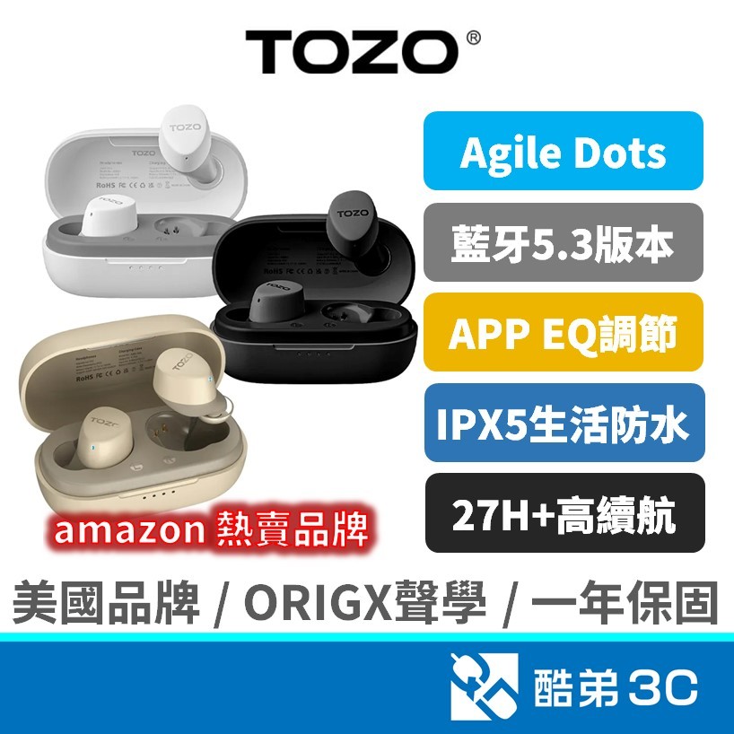 【亞馬遜超熱賣】TOZO Agile Dots 真無線 藍牙耳機 ORIGX調音 專屬APP 藍芽耳機 美國品牌 公司貨黑色|白色|棕色QD 酷弟3C