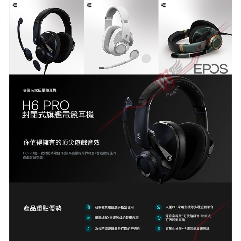 EPOS|H6 PRO 封閉式 旗艦 有線 電競耳機麥克風 PCPARTY綠|白|藍PC PARTY 電競週邊專家