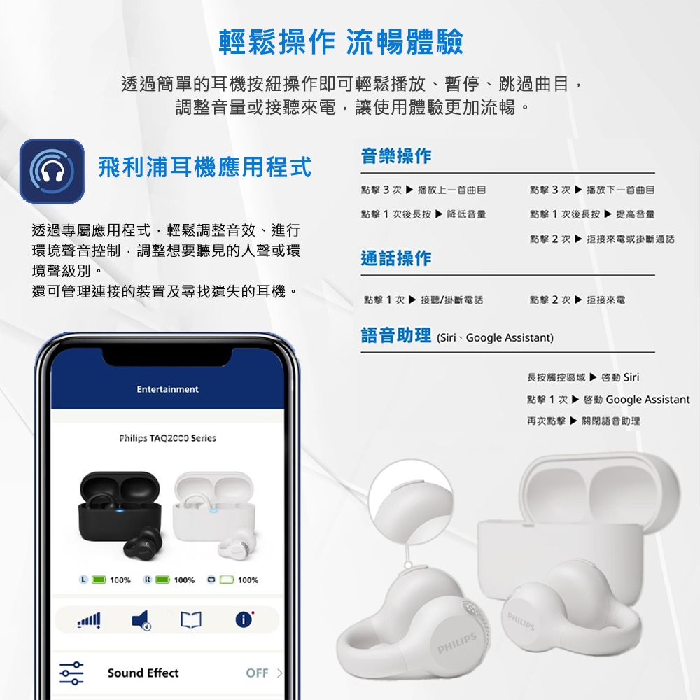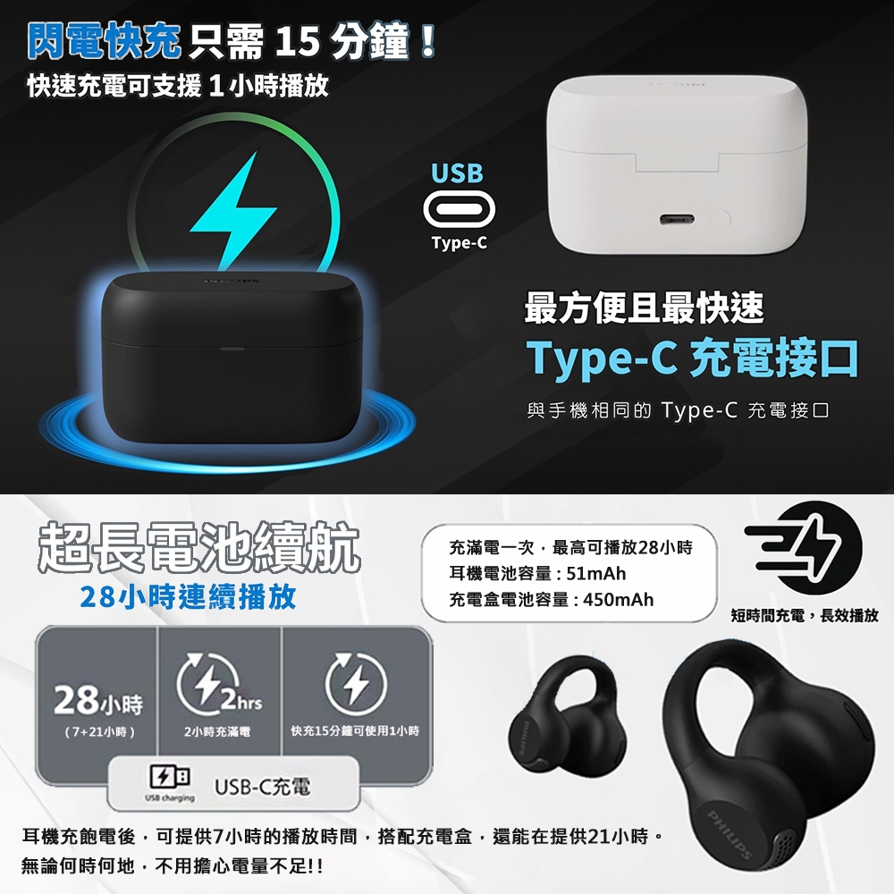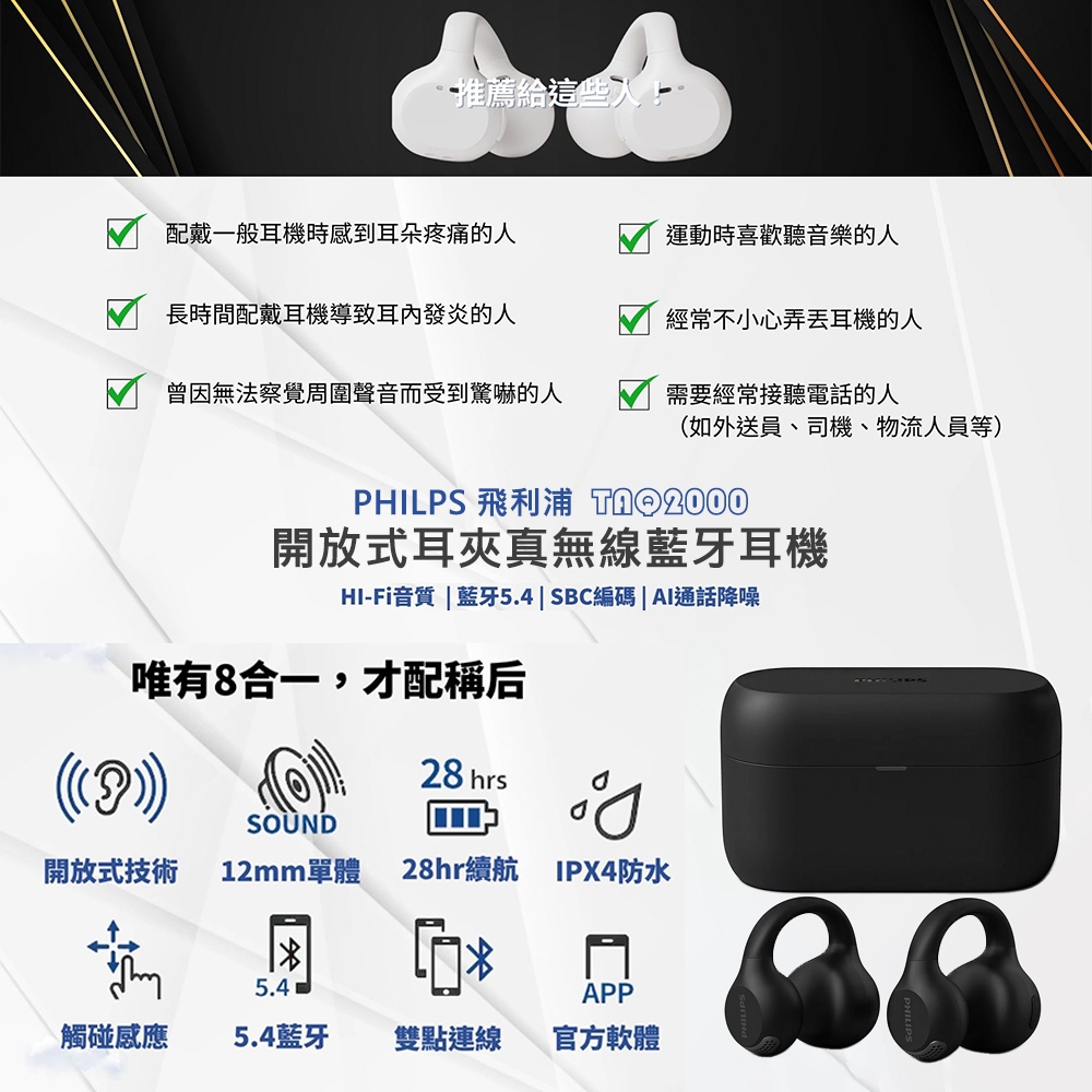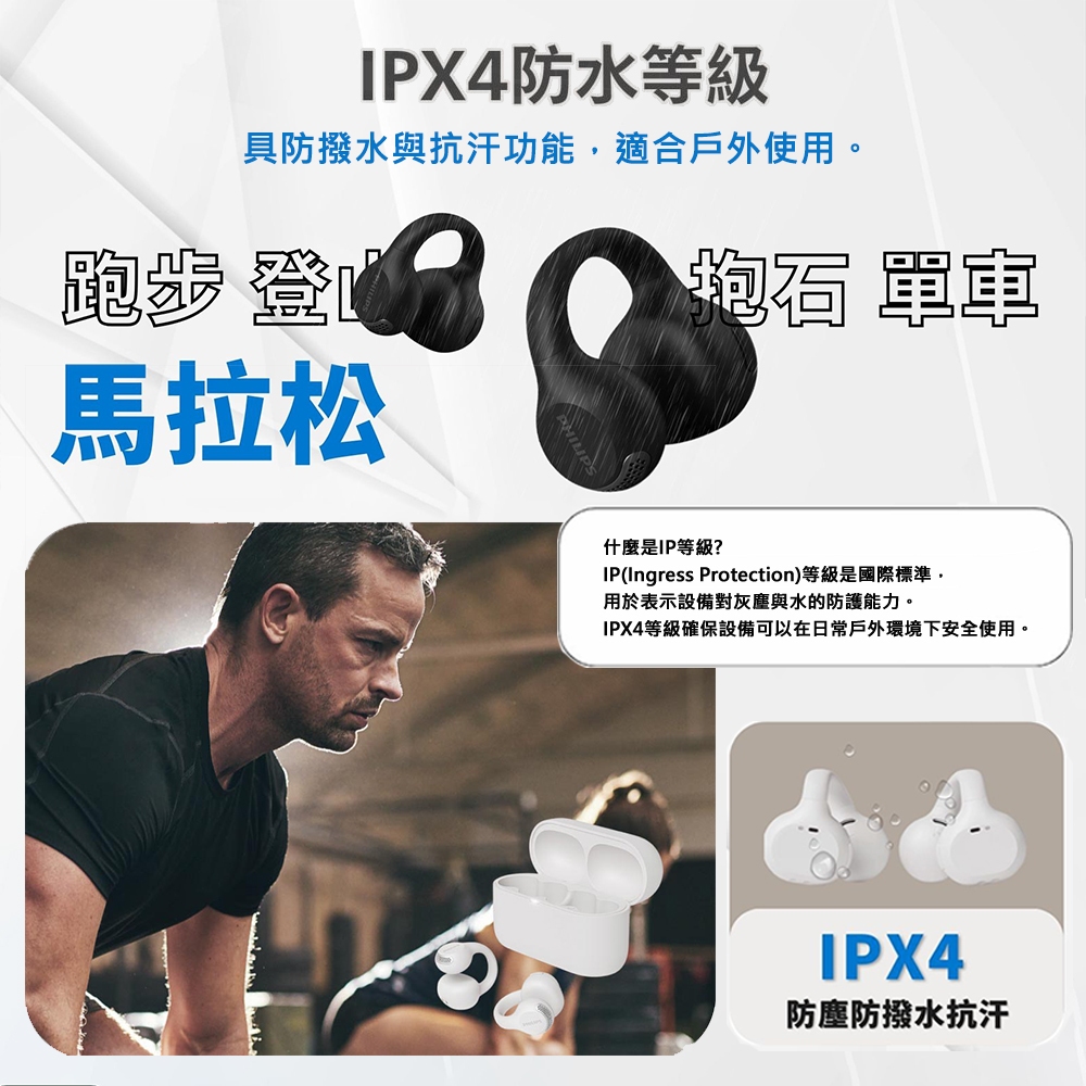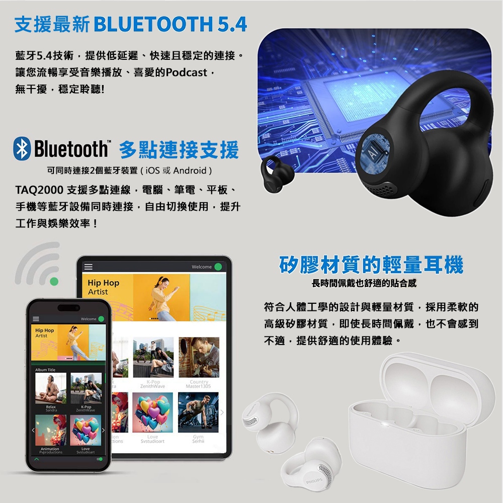 【PHILIPS 飛利浦】開放式耳夾真無線藍牙耳機 TAQ2000 公司貨 快速到貨黑色|白色msc微傳科技