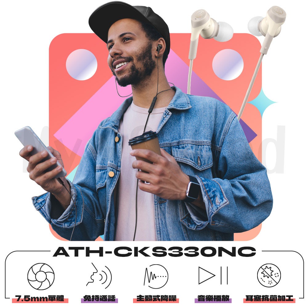 【鐵三角】ATH-CKS330NC TypeC 耳塞式 降噪 重低音耳機 SOLID BASS CKS330 330NC米色|黑色My sound 滿三得 官方旗艦店