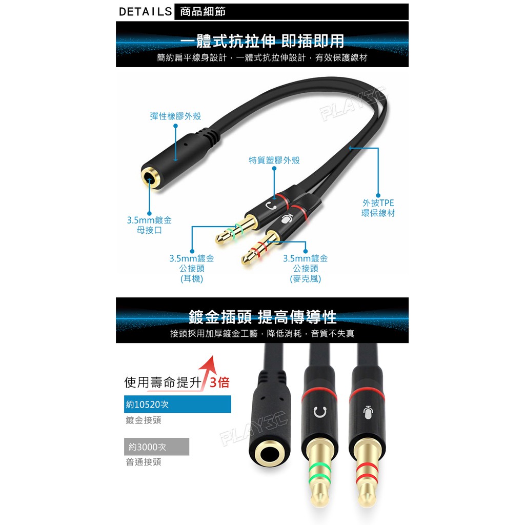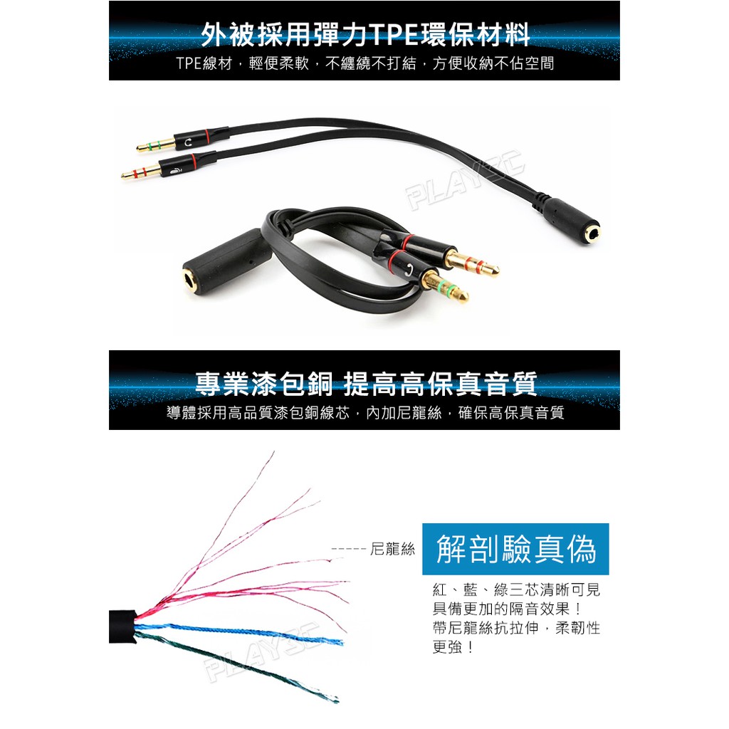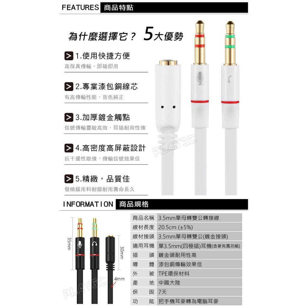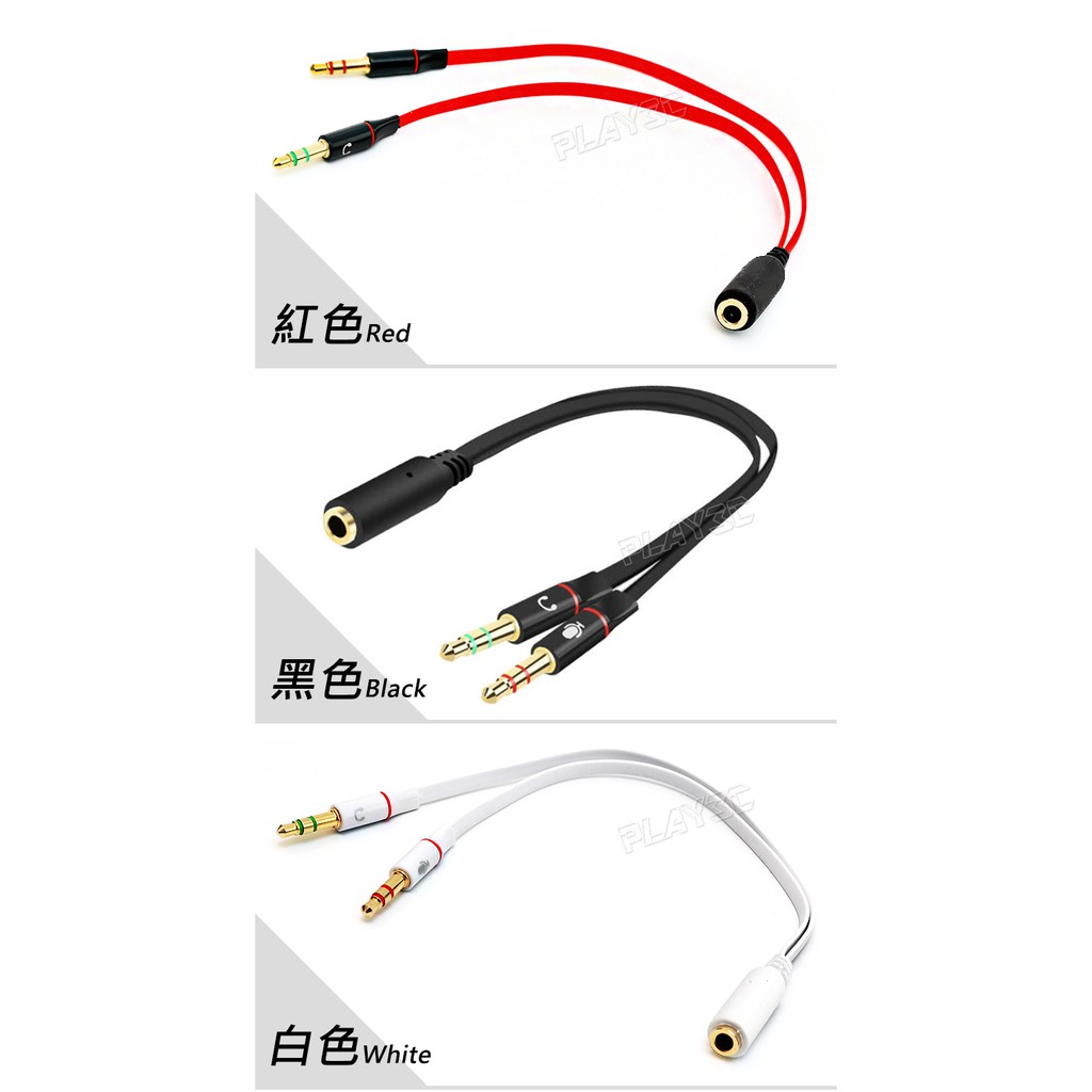 3.5mm 音源轉接線 2公1母 aux 分接線 1母2公 手機耳機接電腦 手機耳機轉電腦 遠距工作黑色|白色|紅色PLAY3C創意生活館