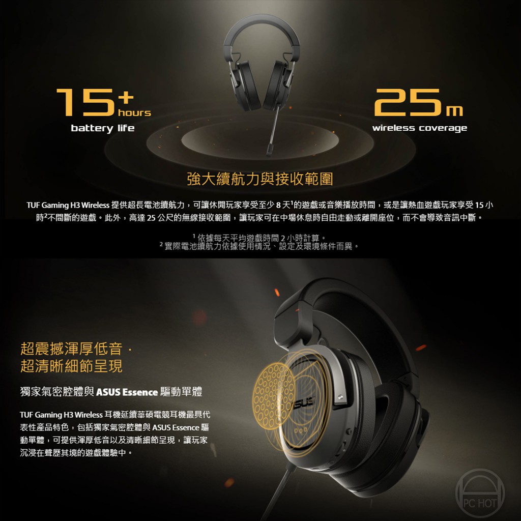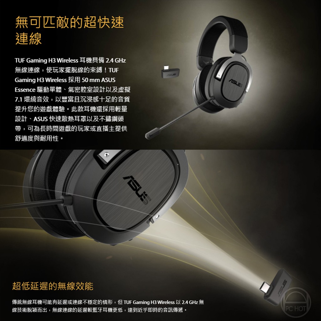 ASUS 華碩 TUF Gaming H3 Wireless 耳罩式耳機 無線耳機 電競耳機 華碩耳機 超長續航主商品|♻福利品【缺說明書.外包裝盒損】|主商品+黑色耳機架ROG 華碩授權店 | 電競周邊館