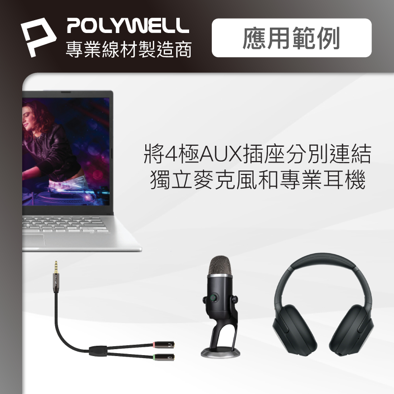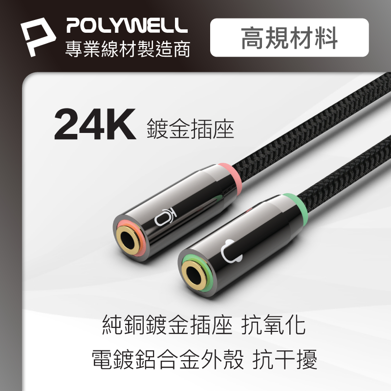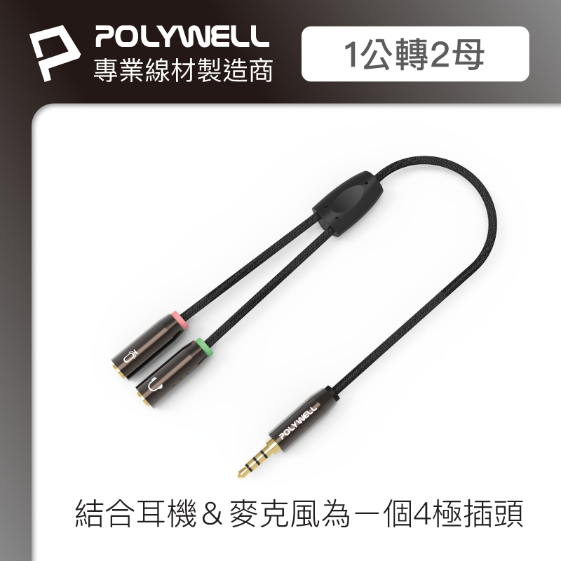 POLYWELL 3.5mm 音源轉接線 1公2母 25公分 分接線 Y-Cable 轉耳機麥克風 寶利威爾 台灣現貨25公分POLYWELL寶利威爾官方旗艦店